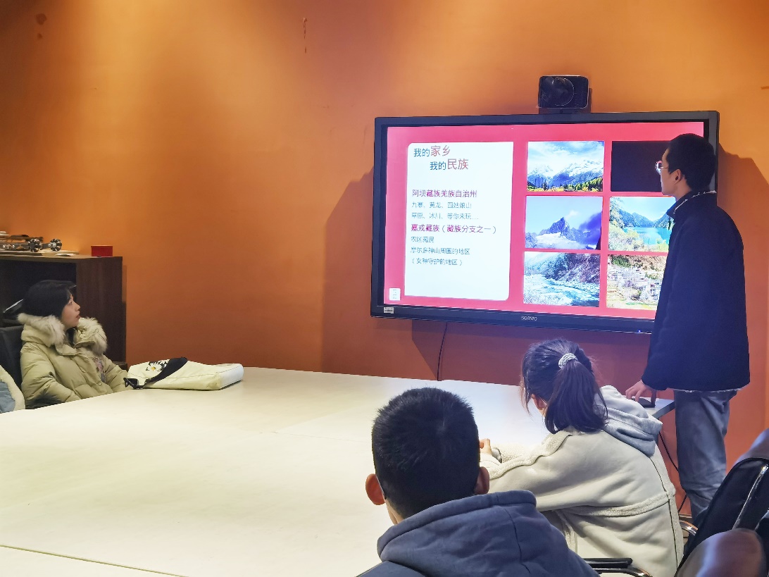 来自城乡规划系的罗勋锐学长对自己的民族与家乡——阿坝藏族自治州进行了简短的介绍,为在座的少数民族同学做了关于老员工活的经验分享,包括校园生活、日常学习和组织工作等方面。罗学长的分享为少数民族同学们提供了宝贵的意见与建议,如室友关系的处理、课余活动的安排等,鼓励同学们调整好心态,主动了解自己民族的历史与文化,保护和继承民族传统,并加入到民族文化传播的行列中。