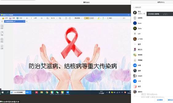 为了让同学们更好地了解、看待以及防范艾滋病、结核病等传染疾病,养成良好的生活习惯,2018级硕士工业设计工程班于2021年3月21日举行了“防治艾滋病、结核病等重大传染病”的线上主题班会。此次班会共有20人参加。