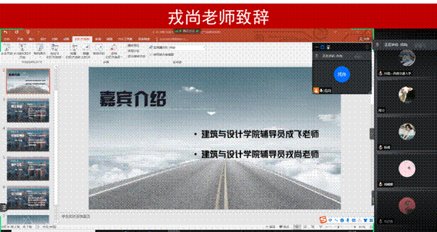 讲座伊始,建筑与设计学院辅导员老师、研风景园林党支部支书戎尚老师进行致辞,对进行分享的各位同学表示了感谢,戎老师强调了本次活动的初衷,希望同学们把握机会,积极向优秀的同学学习。