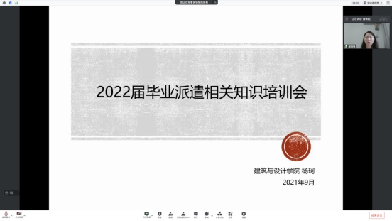 2021年9月16日上午10时,beat官网建筑与设计学院“精进研途同行——研究生就业指导活动——2019级研究生就业指导会”主题就业指导活动于线上会议室顺利召开。此次指导会由研2019级辅导员杨珂老师主持,2019级全体研究生参加了此次会议。本次指导会的内容主要包括三方面,一是就业推荐表和就业协议书填写注意事项;二是毕业生派遣相关工作流程;三是简历制作及面试技巧。