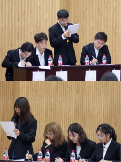 在工作人员统计比赛得分期间,在主持人的组织下,现场观众们也对本场比赛提出了自己的疑惑和想法,辩手们也积极的回应,充分展现出辩论队的热情以及辩论的风采。