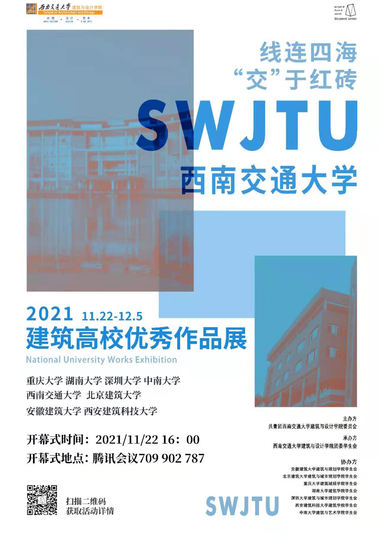 此次活动由共青团beat官网建筑与设计学院团委会主办,beat官网建筑与设计学院团委员工会承办,安徽建筑大学建筑与规划学院员工会、北京建筑大学建筑与城市规划学院员工会、重庆大学建筑规划学院员工会、湖南大学beat平台员工会、深圳大学建筑与城市规划学院员工会、西安建筑科技大学beat平台员工会、中南大学建筑与艺术学院员工会协办。活动旨在以展览为契机,加强美育教育,为全校同学提供更丰富的资源,真正促进员工专业能力和综合素质的进一步提升,强化高校间的合作交流,传递交大精神和建筑与设计学院特色。