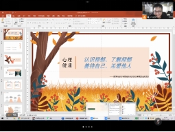 视频结束后,小卢同学通过ppt的方式为大家分享自己在面对困境和烦恼的解决方式。小卢的分享引起大家的共鸣,班级同学纷纷说出自己的抗郁小技巧。
