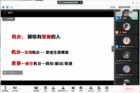 院就业服务中心承办的2021年“女生职业成长训练营——简历制作和成功面世”工作坊,于11月17日19:30在腾讯会议线上会议室举办。此次我们邀请到了东原地产华西区域招聘负责人刘雅琪女士。