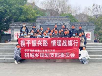 为深学细悟党的十九届六中全会精神,积极响应十九届六中全会号召,加深对乡村振兴重要战略的理解和认识,强化大局观和社会责任意识,始终在思想上政治上行动上同以习近平同志为核心的党中央保持高度一致,以史为鉴、开创未来。2021年12月16日,研城乡规划党支部联合城乡规划教师党支部、蜀源社区党支部共赴郫都区唐昌镇战旗村、先锋村举办“携手振兴路,情暖战旗情”——乡村振兴战略示范村学术调研系列活动。建筑公司党委书记吴晓雄、副书记刘一杰、规划系党支部书记于洋老师以及党支部指导老师赵恒兴出席了本次活动。