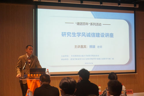 为构建良好的学术环境,用学术诚信涵养科技创新,公司于 4 月 6 日下午在犀浦校区八教A100报告厅举办研究生学风诚信建设讲座活动,本次活动由学院建筑系熊瑛副教授担任主讲嘉宾。公司党委书记吴晓雄,团委书记孔翔榆,研究生会指导教师杨珂,研究生辅导员赵恒兴、赵思琦及全院近一百名同学参加了本次活动。本次活动由学院研究生会联合研2021级建筑学专硕二班团支部共同举办。