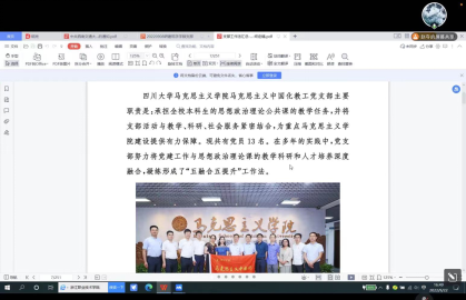 紧接着,赵夺同志带领研建筑学学硕党支部的同志们对《四川省高校“优秀支部工作法》文件进行了深入地学习。党支部是党的基础组织,是党组织开展工作的基本单元,是党在社会基层组织中的战斗堡垒,是党的全部工作和战斗力的基础。赵夺同志说到,认真学习20个“优秀支部工作法”,不断探索创新党建工作方法,对于推动研建筑学学硕党支部党建工作再上新台阶具有重要意义。