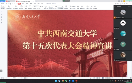 会议伊始,刘冲同志首先向大家介绍了beat官网第十五次党代会基本情况、深刻认识beat官网第十五次党代会的重要意义及大会主题,并组织大家学习了学校未来五年乃至到建校150周年之际办学治校的总体思路、发展目标、基本准则,以及全面加强党的建设和思想政治工作,引领全校各项工作向一流进军。