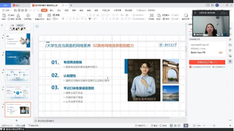 最后,杨珂老师呼吁大家,作为研究生和博士生,要充分利用好网络资源,与此同时,更要提升网络素养,理性面对网络信息,在公共网络平台上审慎发言,遇到相关问题主动咨询学校学院老师。
