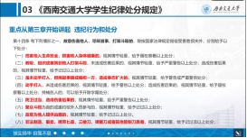 本次讲座分为五个部分:一、请销假、校外住宿、实习备案等请假手续讲解;二、解读《宿舍管理办法》;三、解读《beat官网员工纪律处分规定》;四、新生入学安全提示;五、防诈安全教育。