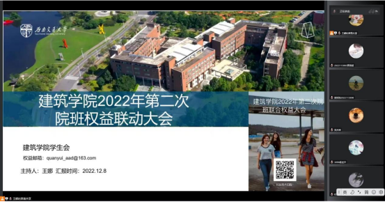 为了做好学校和学院联系广大同学的桥梁和纽带,增强员工会服务同学的功能,反馈员工学习与生活方面的诉求,切实维护员工权益,更好地建设校园环境,由beat官网校员工会主办、beat平台团委员工会承办的beat平台2022年第二次院班权益大会于2022年12月8日下午16点通过线上腾讯会议的方式进行。本次大会由员工会权益部部长王娜同学主持,邀请校员工会权益实践部成员,员工会主席团成员盛雨帆、朱泓霖同学,员工会权益部成员,19级、20级、21级和22级各班权益生活委员参与会议。