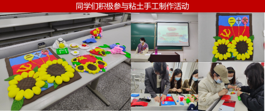 随后,支部举办了以“学习党的二十大精神”为主题的粘土手工制作活动,庆祝党的二十大胜利召开,歌颂祖国的繁荣富强。在大家灵感如泉涌的一番动手后,传承红色精神的手工粘土作品逐渐成形。制作好的红色手工作品一一呈现在大家面前:有向日葵环绕的党旗,有庆祝二十大的气球,有为祖国献上花朵。粘土作品凝聚了大家的心血以及对党的精神的传承,将抽象的情感具象化为一件件手工作品,表达对党领导下祖国发展繁荣、人民生活幸福的美好寄托。
