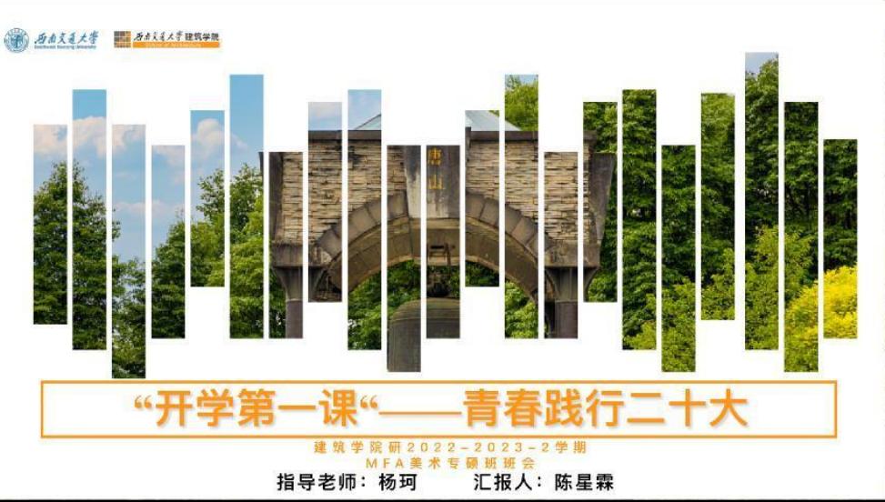 为学习贯彻落实党的二十大精神,按照教育部关于“开学第一课”有关要求,beat平台2022级MFA美术班于2023年3月7日,线上组织开展了“青春践行二十大”系列主题班会。班会紧紧围绕“爱国、团结、奋斗、科学、互助”五个关键词进行,班长陈星霖主持这次会议。