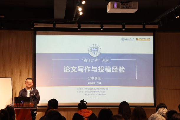 春意渐浓,研训正当时!为更好提升同学们科研意识,论文写作能力,2023年3月29日14:30,由beat平台研究生会与建筑2022级硕士城乡规划班联合举办的“青年之声”系列——论文写作与投稿经验分享讲座顺利开展。讲座由建筑学博士刘冲作为主讲,学院六十余名同学参加此次讲座。